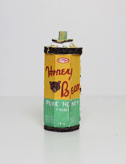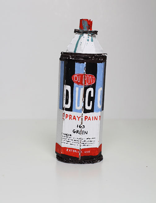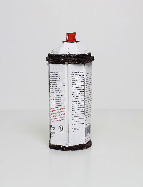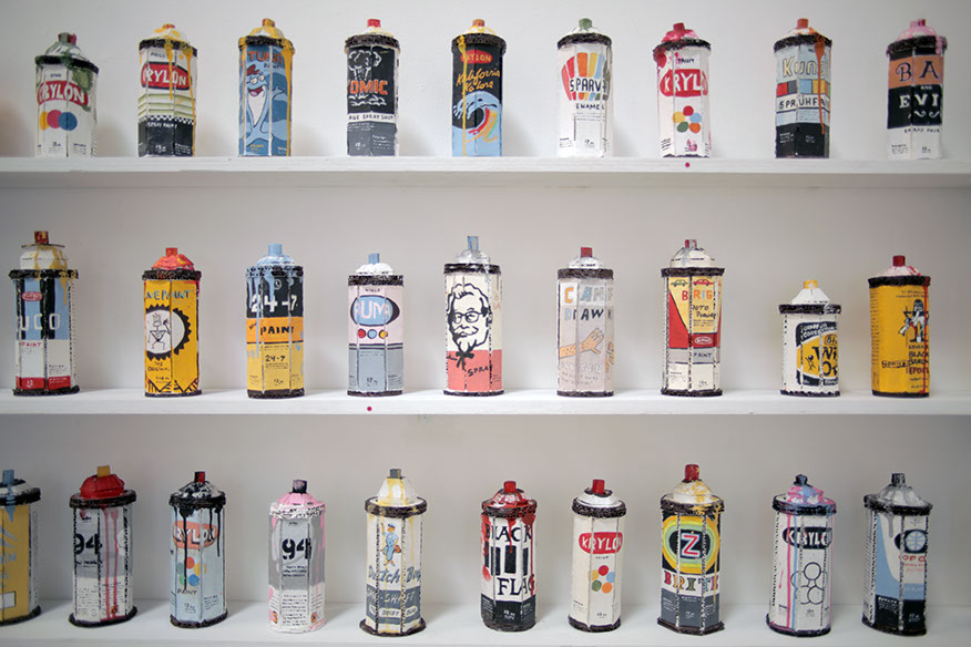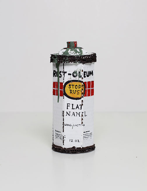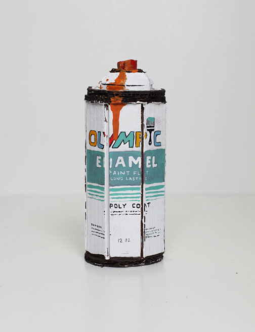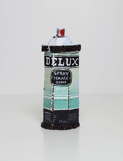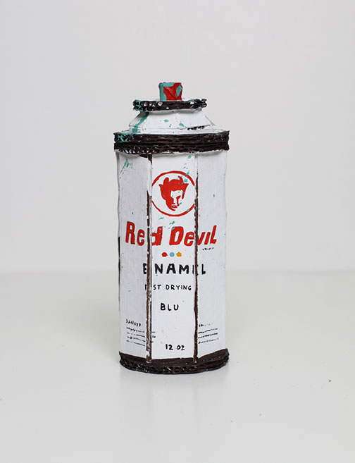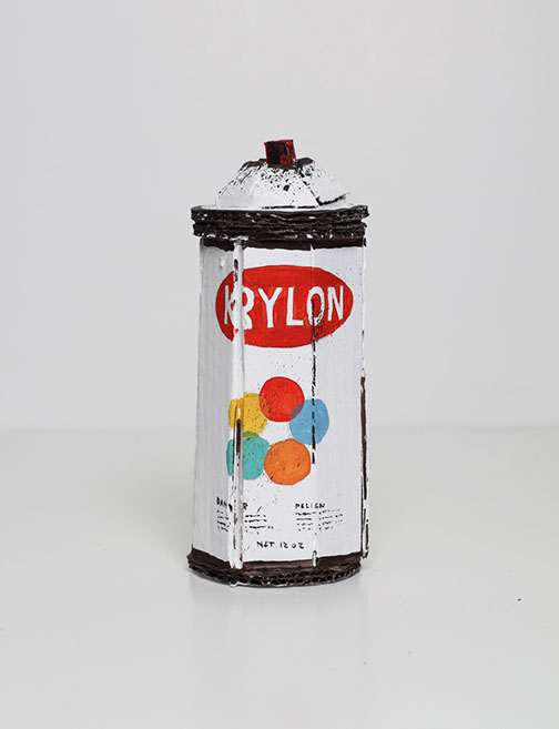 The cans seen here are sold. New sets available at the whim of the artist. Sold in sets of 3 -No exceptions- Comes with a beat-up wooden display shelf. 900 dollars per set. • Inquires welcome • paypal accepted • Every can rattles when shaken. Made from only the highest grade cardboard that we can find for free in a garbage can. It's good for the environment I'm told. These cans have been previously shown at POW Gallery, London, The Robert Berman Gallery, Los Angeles, Parlor Gallery, Asbury Park, NJ and Known Gallery, Los Angeles.