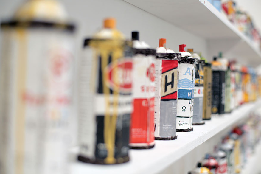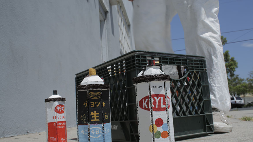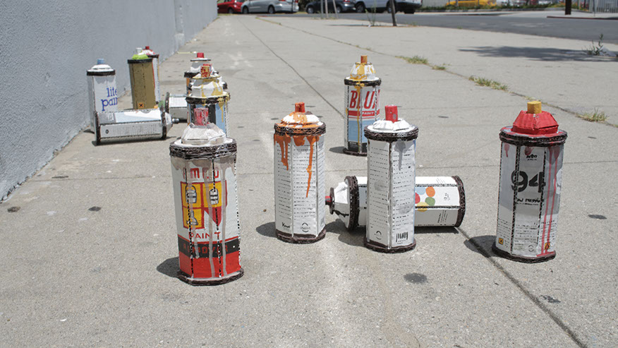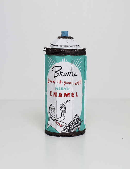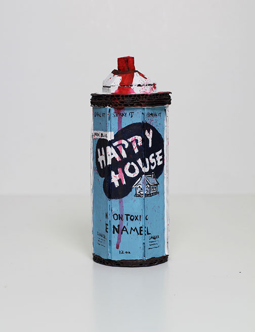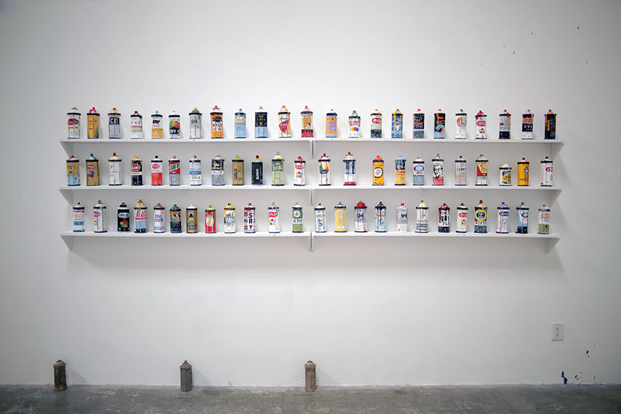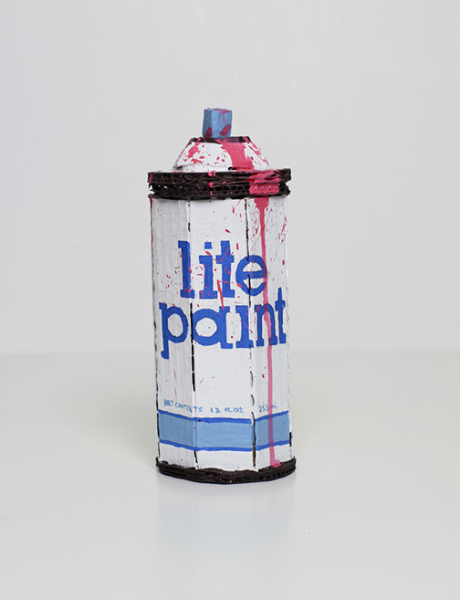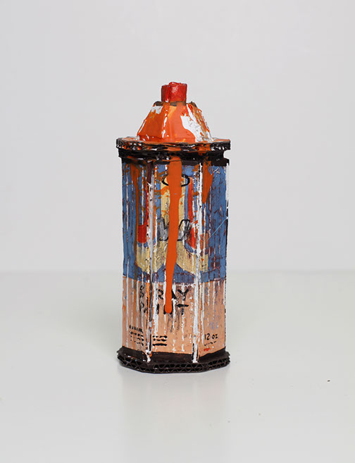 The cans seen here are sold. New sets available at the whim of the artist. Sold in sets of 3 -No exceptions- Comes with a beat-up wooden display shelf. 900 dollars per set. • Inquires welcome • paypal accepted • Every can rattles when shaken. Made from only the highest grade cardboard that we can find for free in a garbage can. It's good for the environment I'm told. These cans have been previously shown at POW Gallery, London, The Robert Berman Gallery, Los Angeles, Parlor Gallery, Asbury Park, NJ and Known Gallery, Los Angeles.